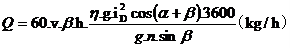 物料平均輸送速度是在一定的假設條件下建立的運動方程式,而實際的運動要復雜得多。另外物料的堆積重度、形狀、含水率,對輸送速度都有影響,因此在算出理論平均速度后還須進行修正。物料輸送機的輸送量Q為: