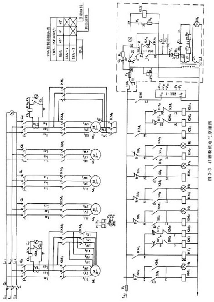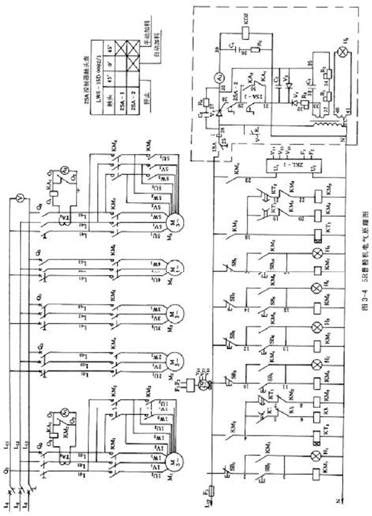 電機、電磁振動給料機及分級機的常見故障及排除方法見表3-1,3R、4R 和 5R磨粉機電氣原理分別見圖3-2、圖3-3和圖3-4。